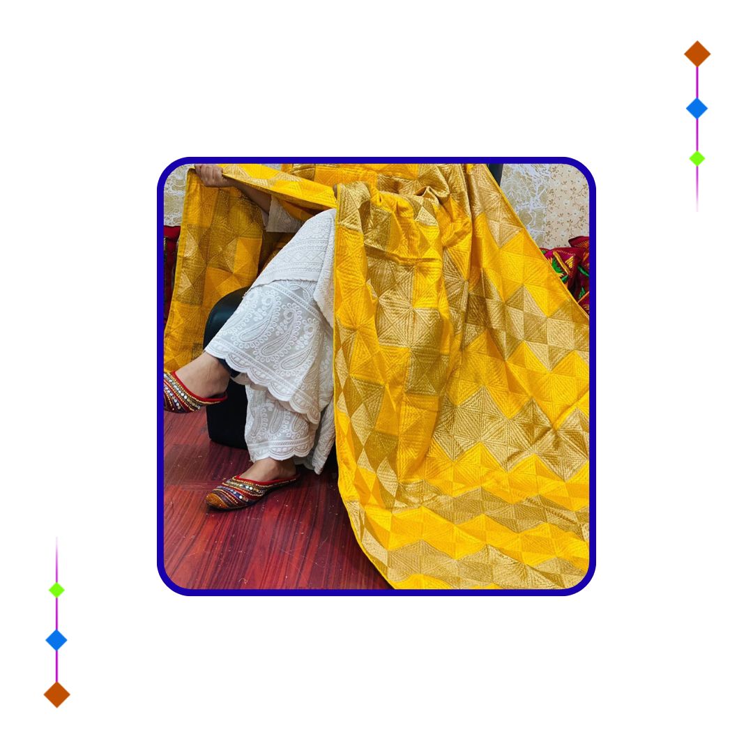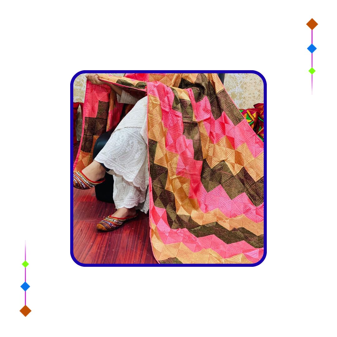 Whether used for dupattas, shawls, kurtas, wall hangings, or home décor, Phulkari embroidery adds color, elegance, and a traditional touch to every setting. It’s perfect for weddings, festivals, or as a meaningful handmade gift.